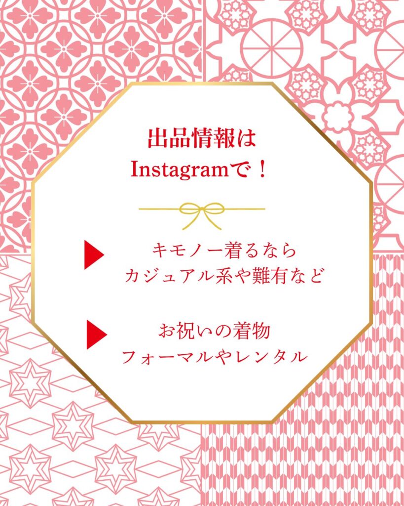 メルカリ&メルカリショップスの出品情報はInstagramで! 2026年4月8日 最終更新日時 : 2026年4月8日 きりまる 当サイトは、アフィリエイト等の広告を掲載して収益を得ています。 ごめんなさい。ブログでご紹介していたネット販売のお品ですが、Instagramに動画で掲載することにしました。申し訳ありませんが、Instagramでご覧ください! キモノー着るならカジュアル着物や小物など お祝いの着物フォーマル・レンタル FacebookXBlueskyHatenaCopy