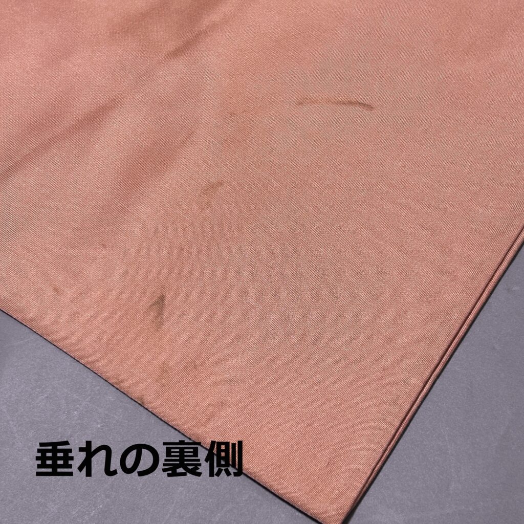 - 前帯の下部に極小の汚れが一つあります。 また、垂れの裏側にも汚れがあります。 その他に特に目立った難は無いですが、ユーズドの袋帯です。 締めジワ、保管の折あとがあります。 前帯の折あとはキツメです。