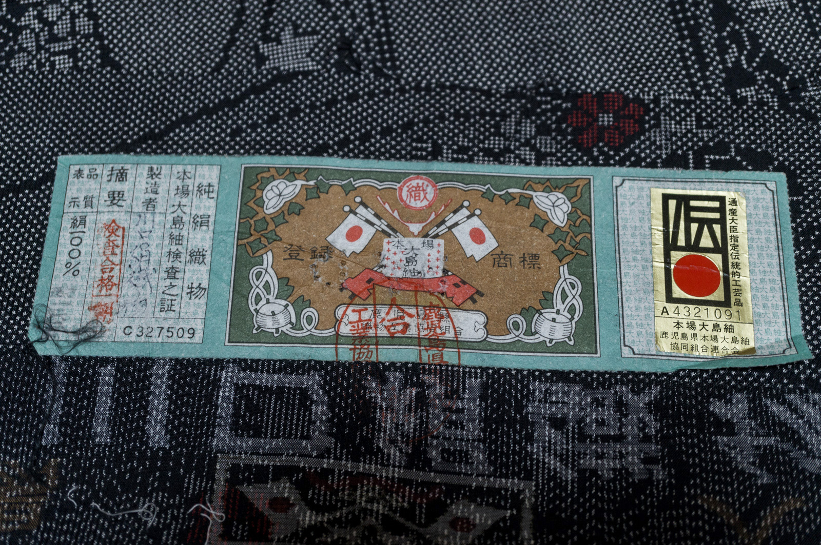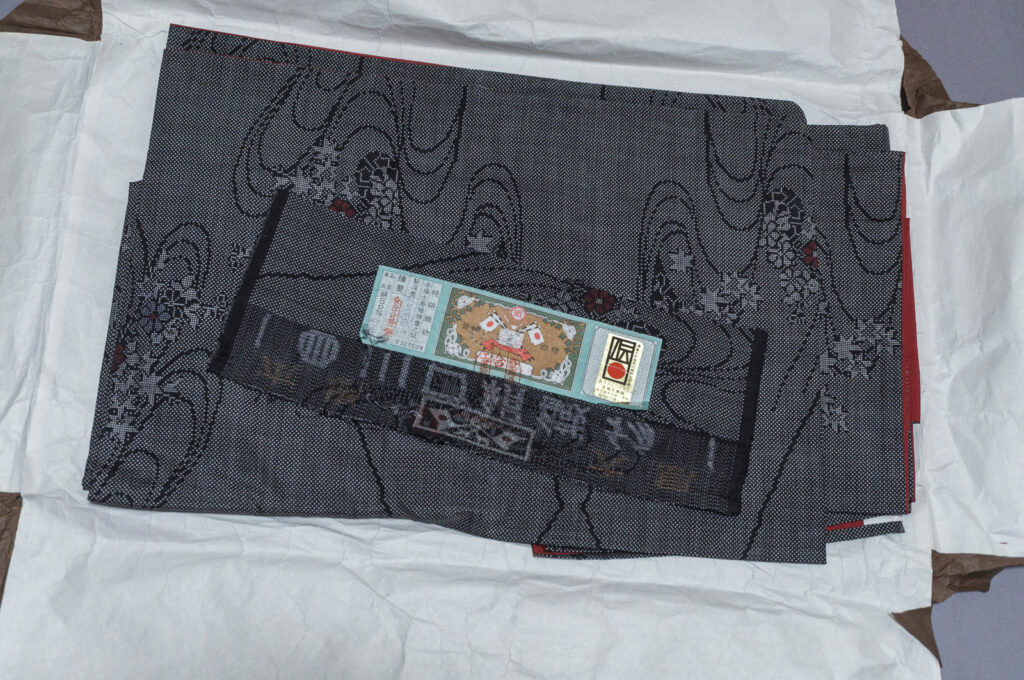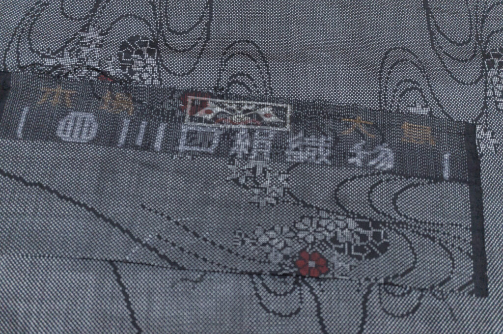 川口絹織物さんの証紙(反物端)付き。
