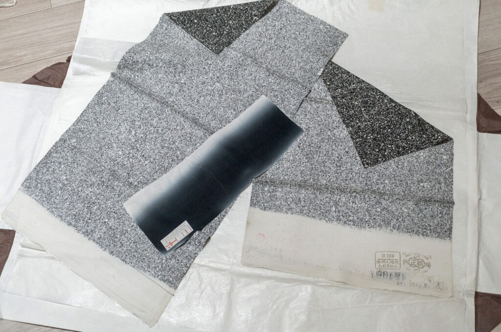 【付下げ】たたき染め・正絹・残布付き・未使用しつけ付き・袷・裄64.5㎝・極美品