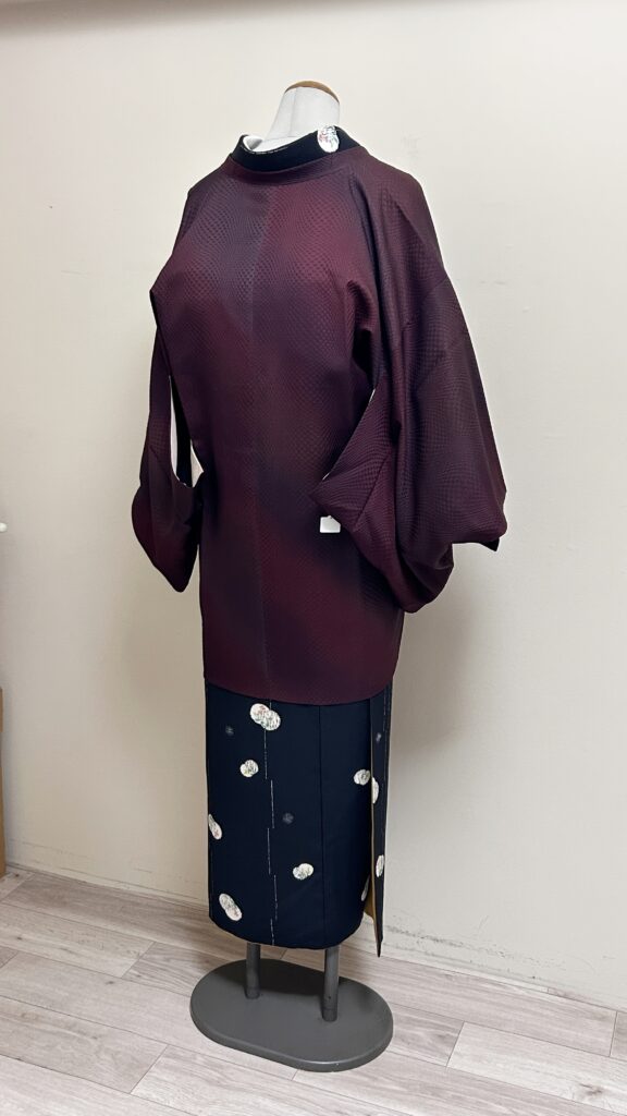 ボルドー、バーガンディといった素敵なお色の道行コートです。