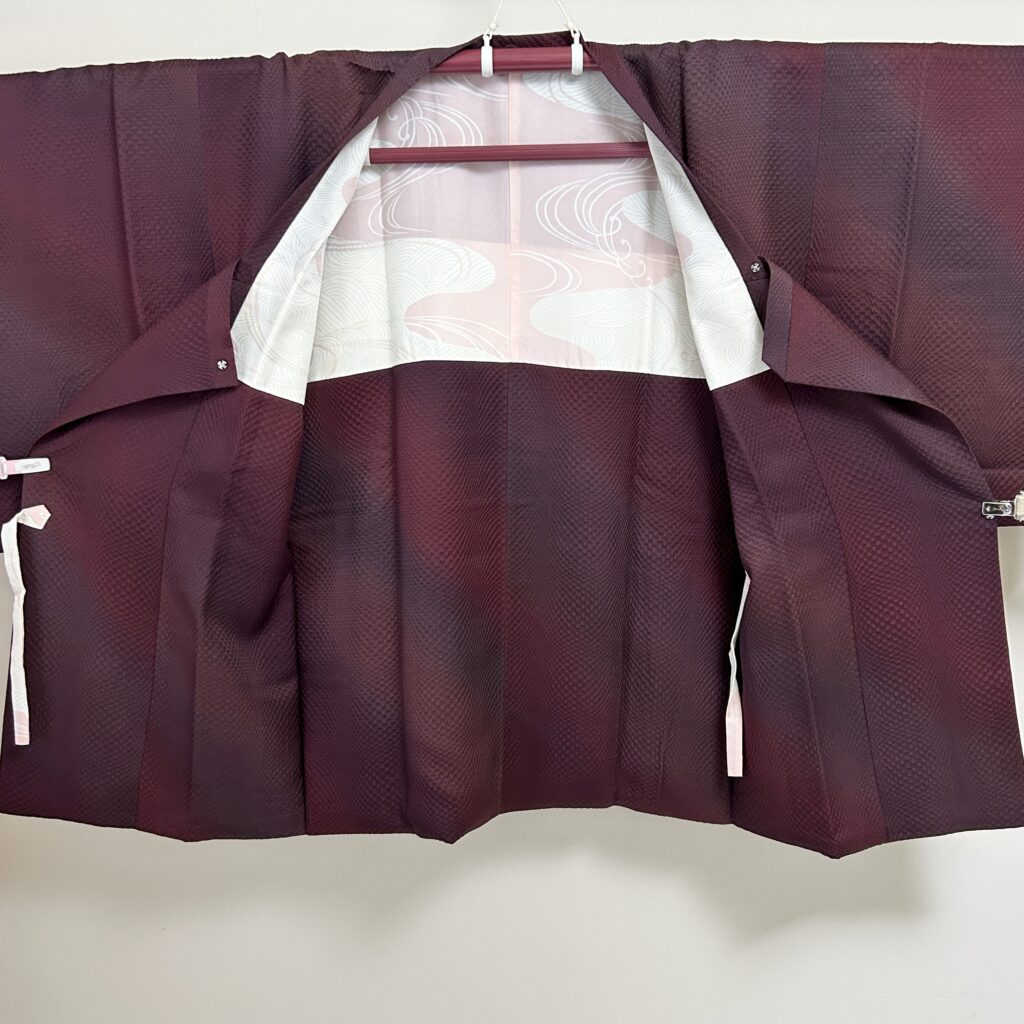 【道行コート】正絹・ボルドー~紅海老茶~濃紫グラデ・美色・裄64㎝
