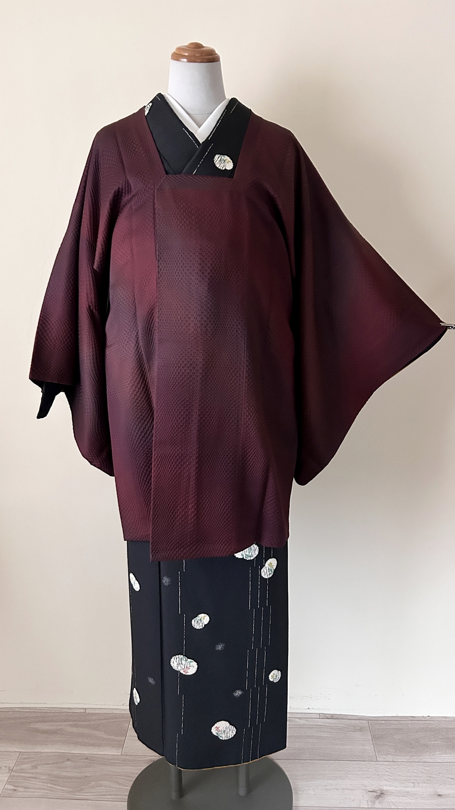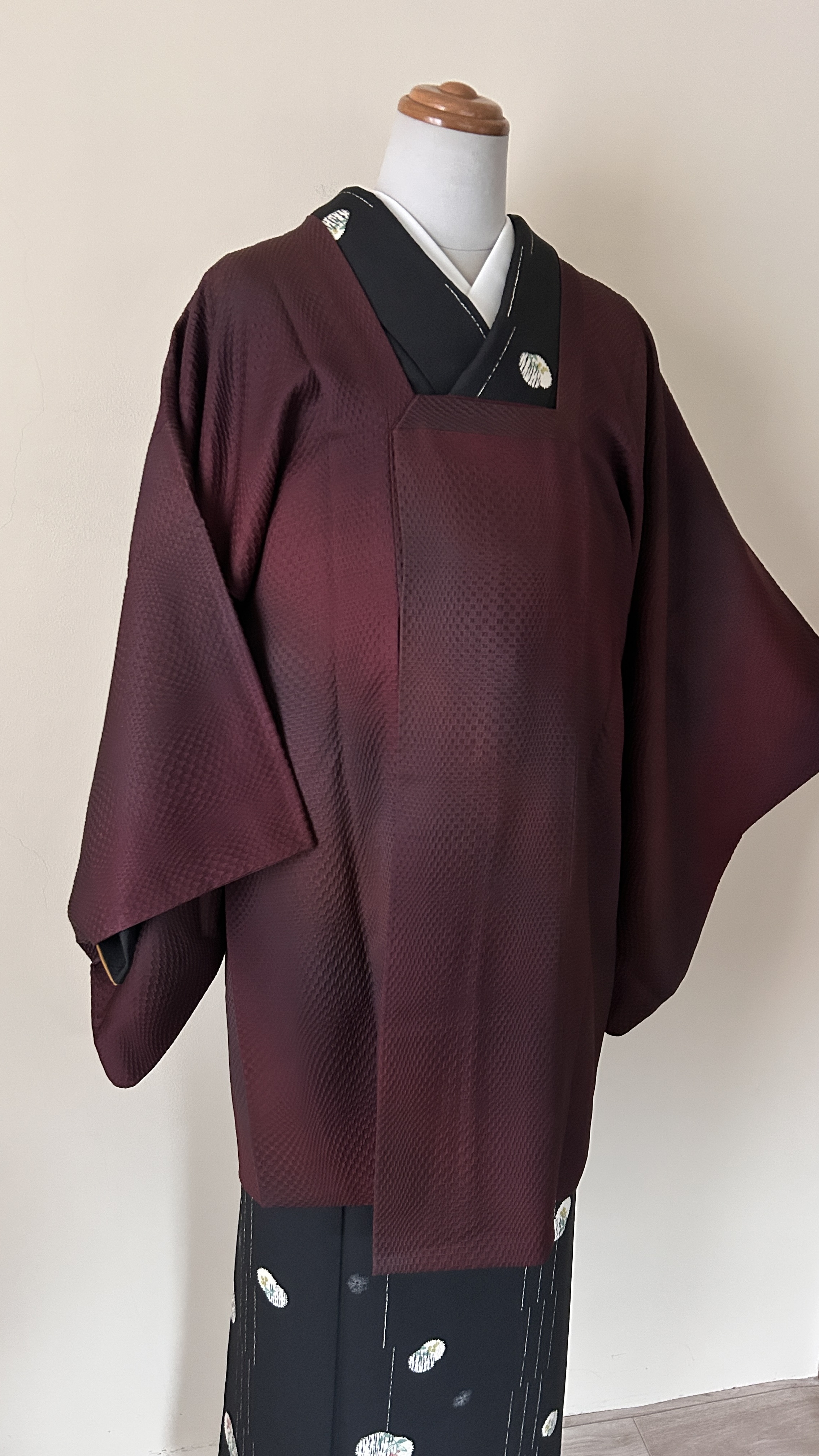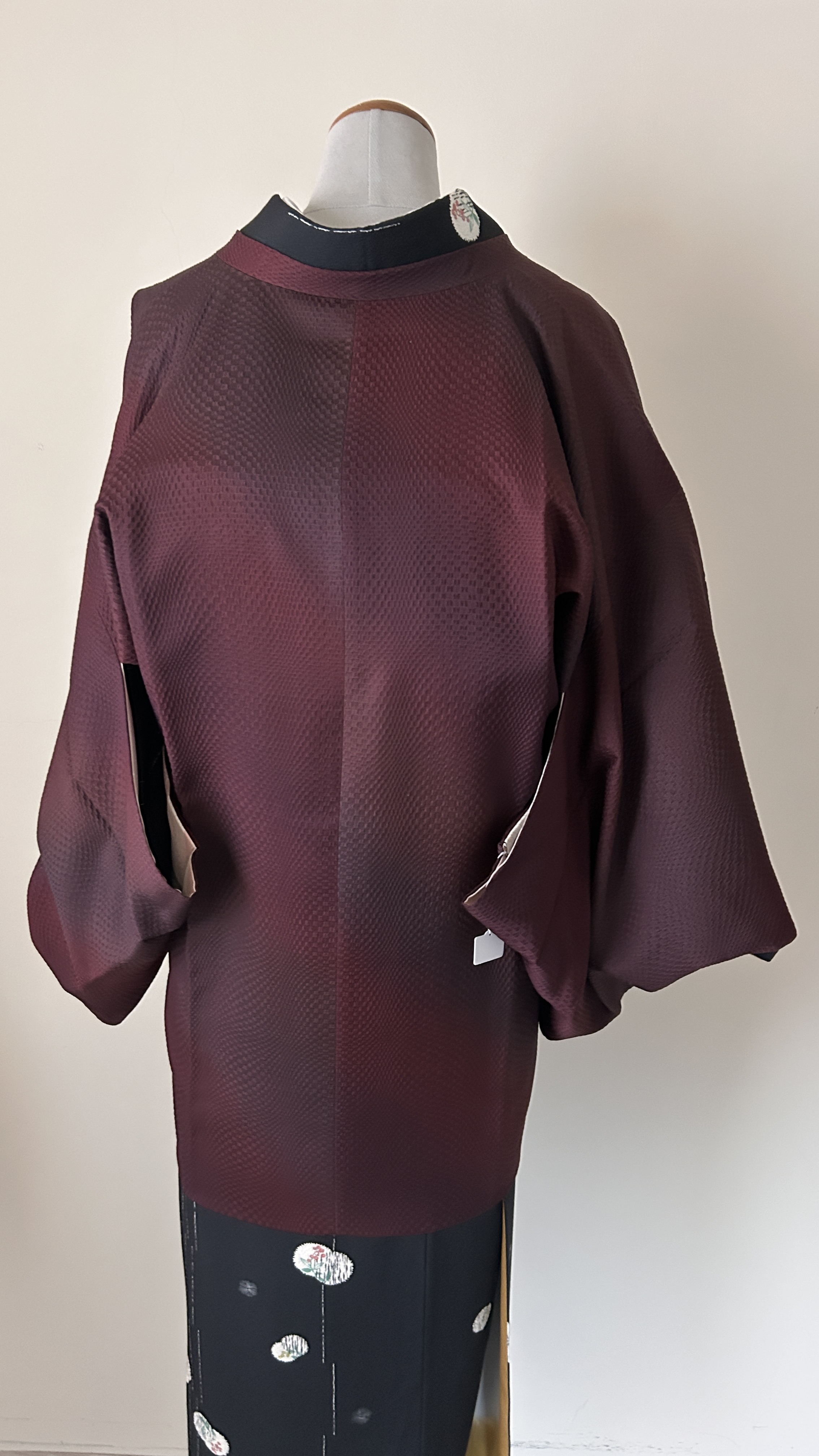 ボルドー、バーガンディといった素敵なお色の道行コートです。