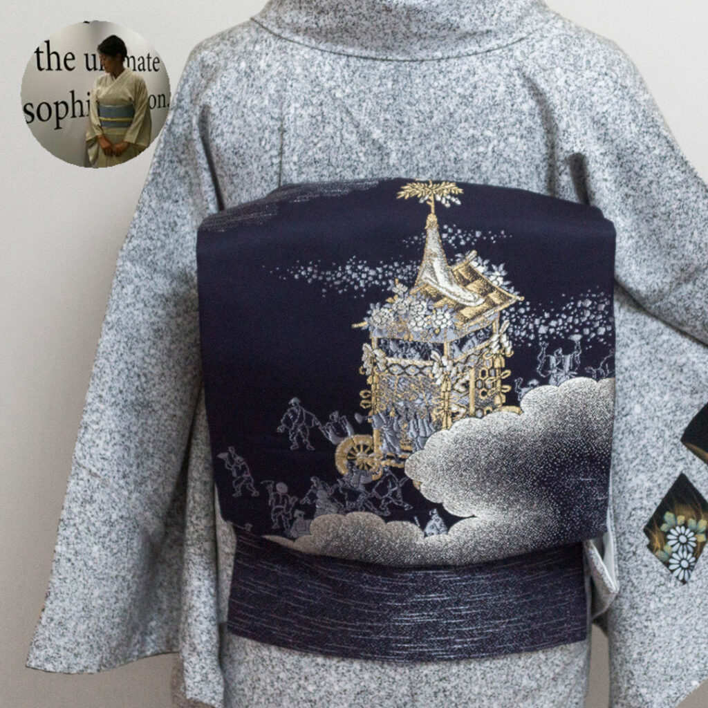 【名古屋帯】正絹・西陣織 ・寿光織・銀通し・金銀糸・お太鼓柄・山鉾文・美品