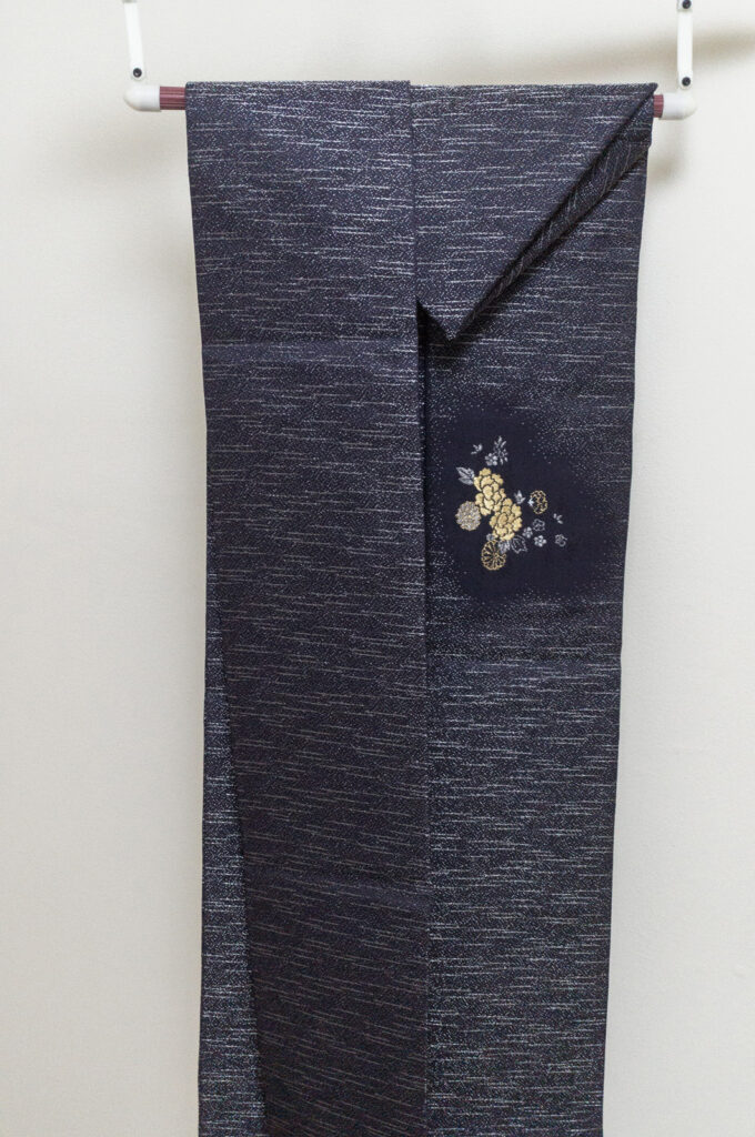 深みのある黒地に金銀糸が繊細に輝く、格調高いお太鼓柄。