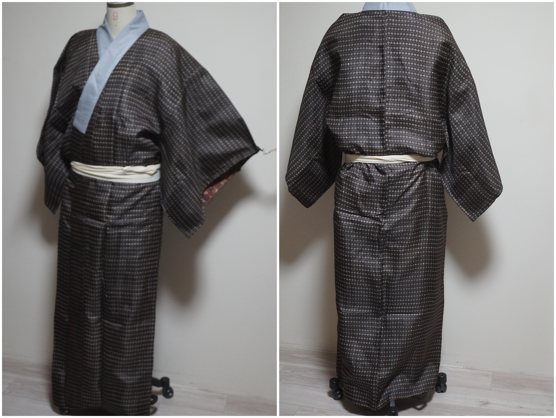 Sold-Out【男物 】シルクウール・アンサンブル・長着裄68㎝・身丈152.5㎝・正絹長襦袢