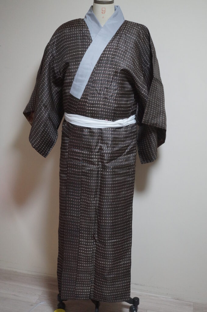 【男物 】シルクウール・アンサンブル・長着裄68㎝・身丈152.5㎝・正絹長襦袢