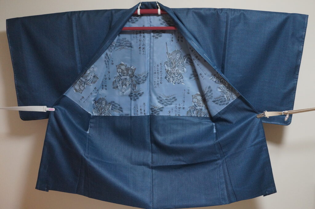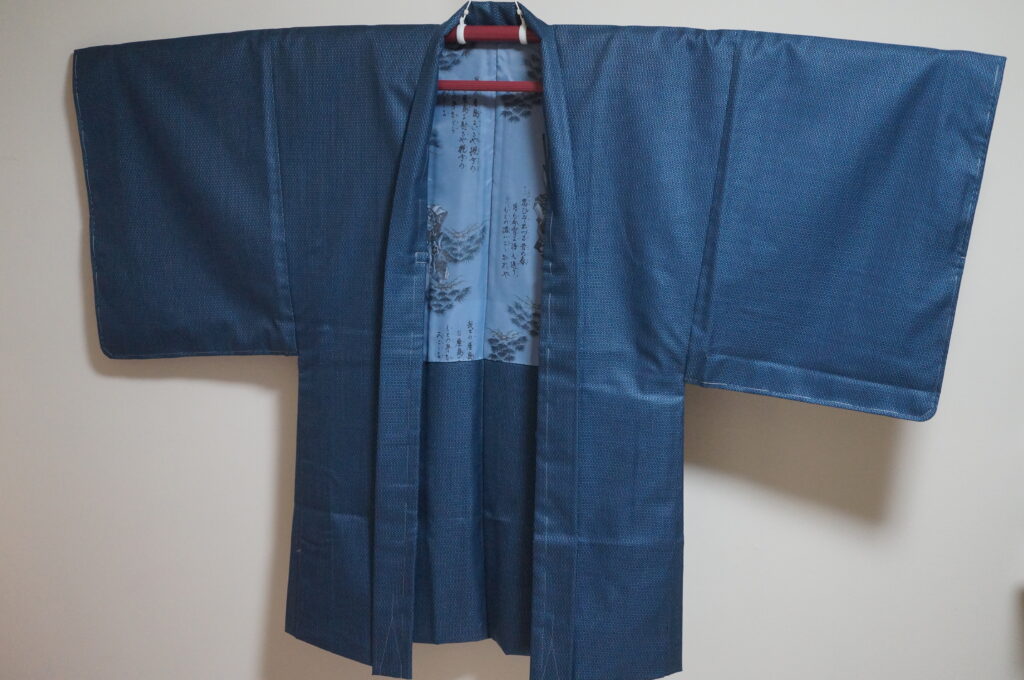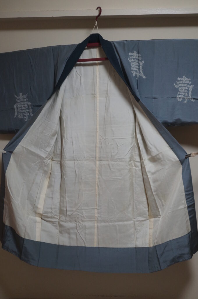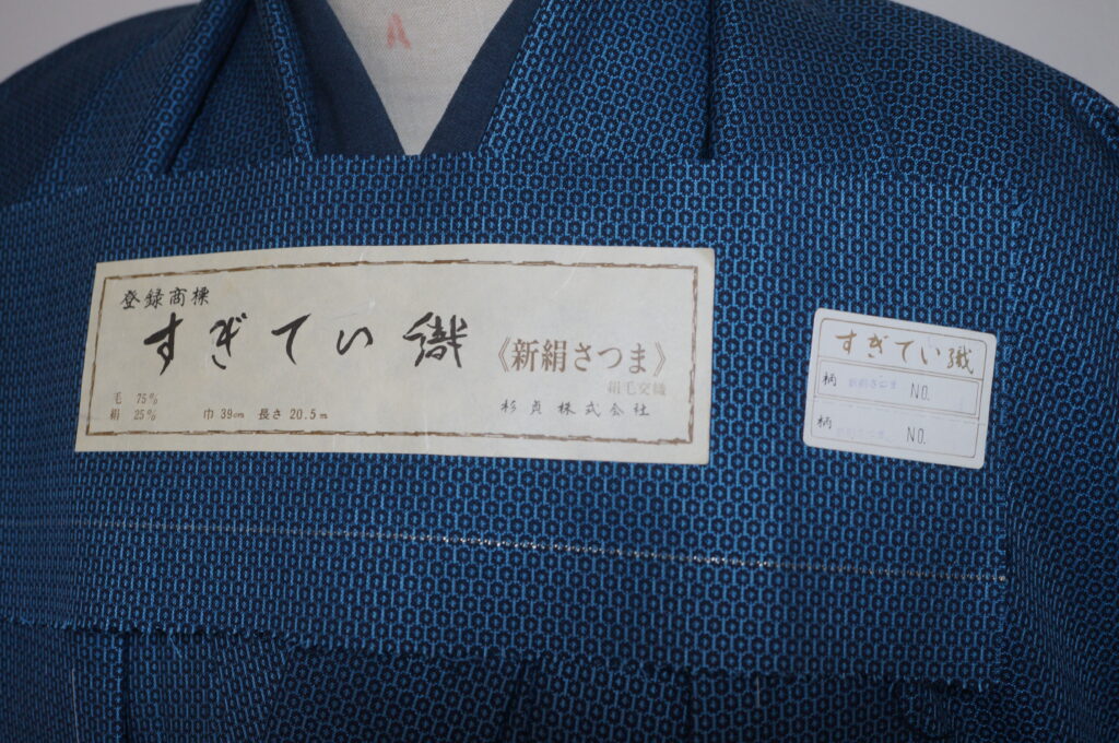 - 毛75% 絹25%のシルクウールです。 反物端の証紙があります。 羽織裏はポリエステルのようです。