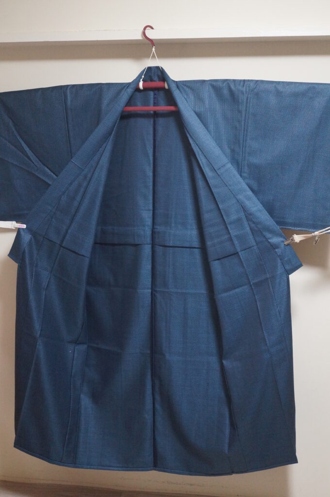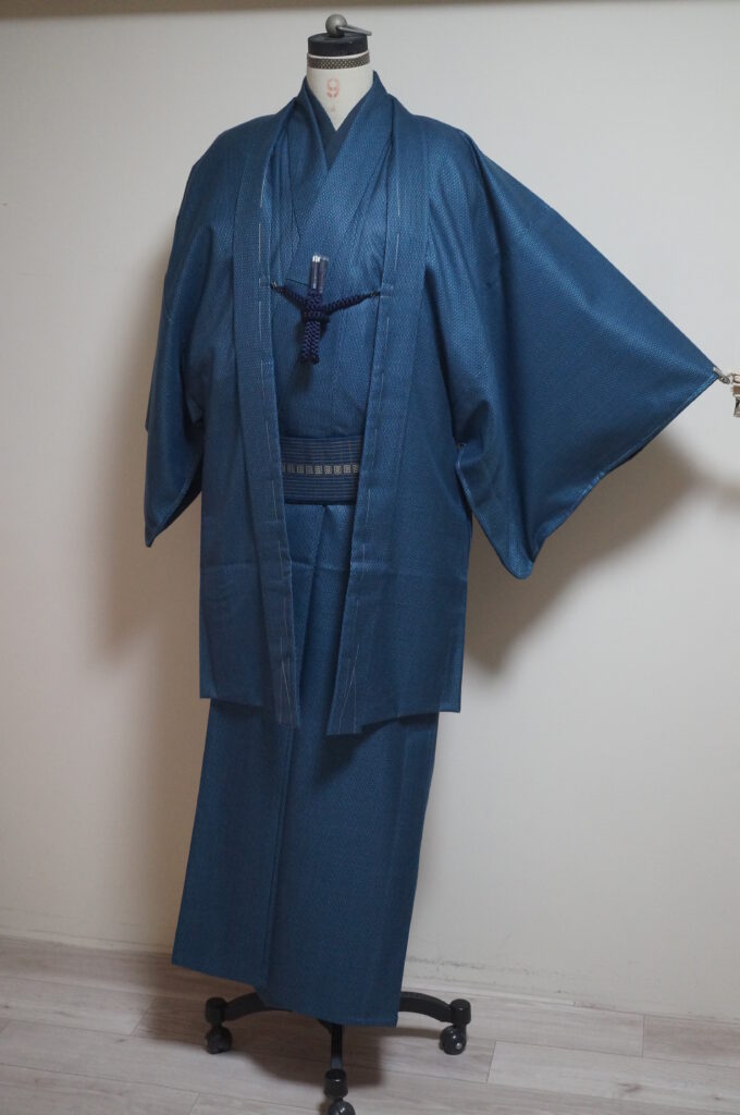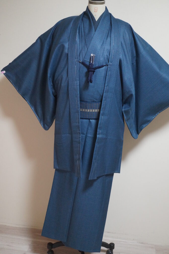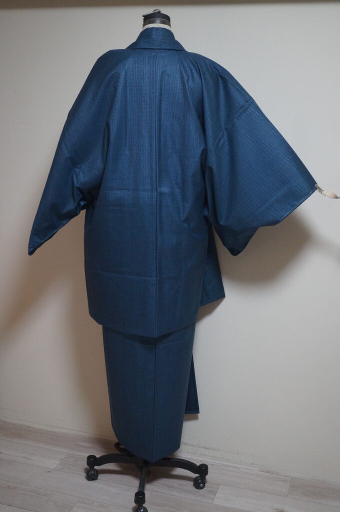 【男物 】シルクウール・アンサンブル・ すぎてい織・新絹さつま・羽織裄69.5㎝・長着身丈144.5㎝・正絹長襦袢