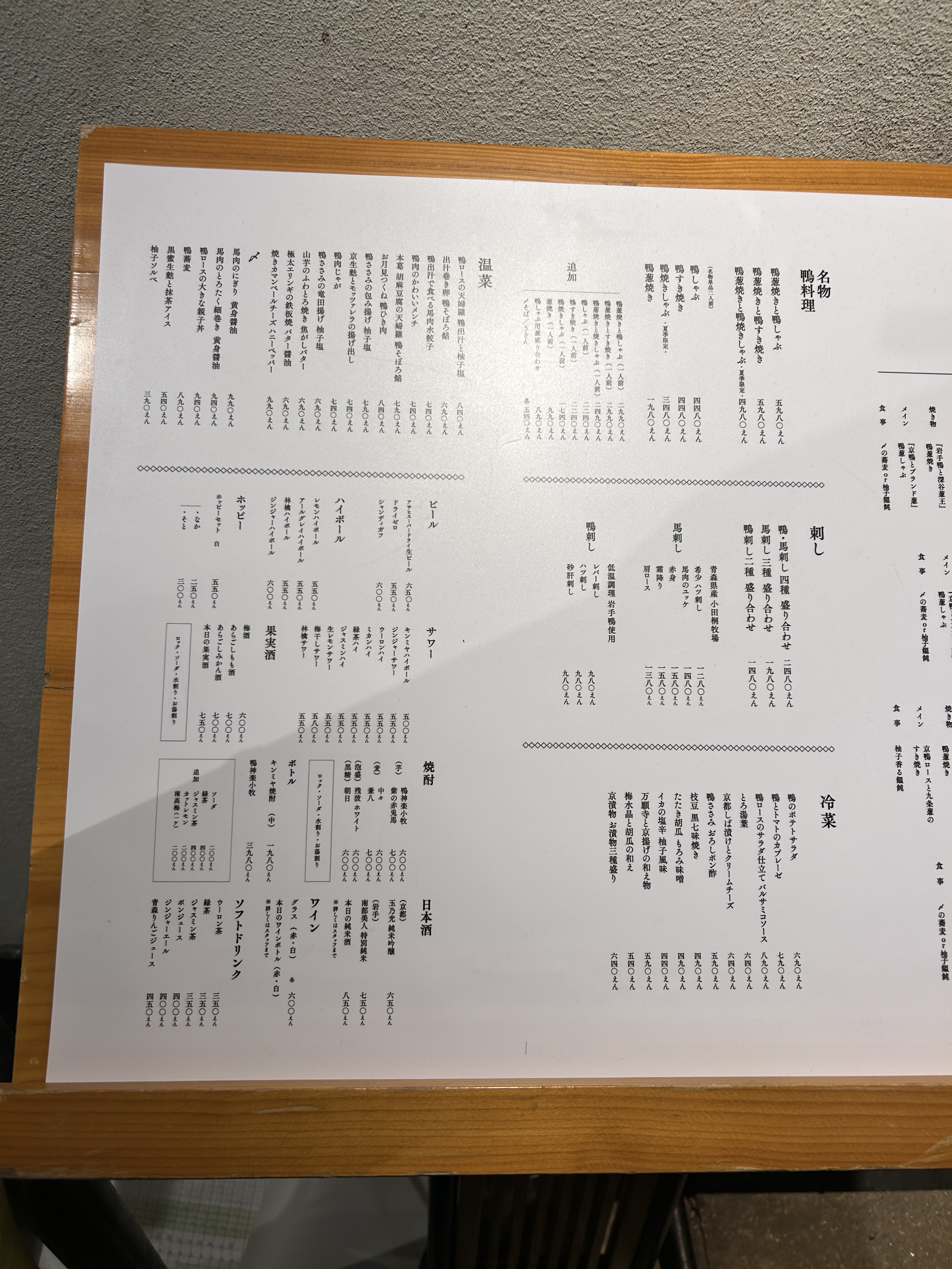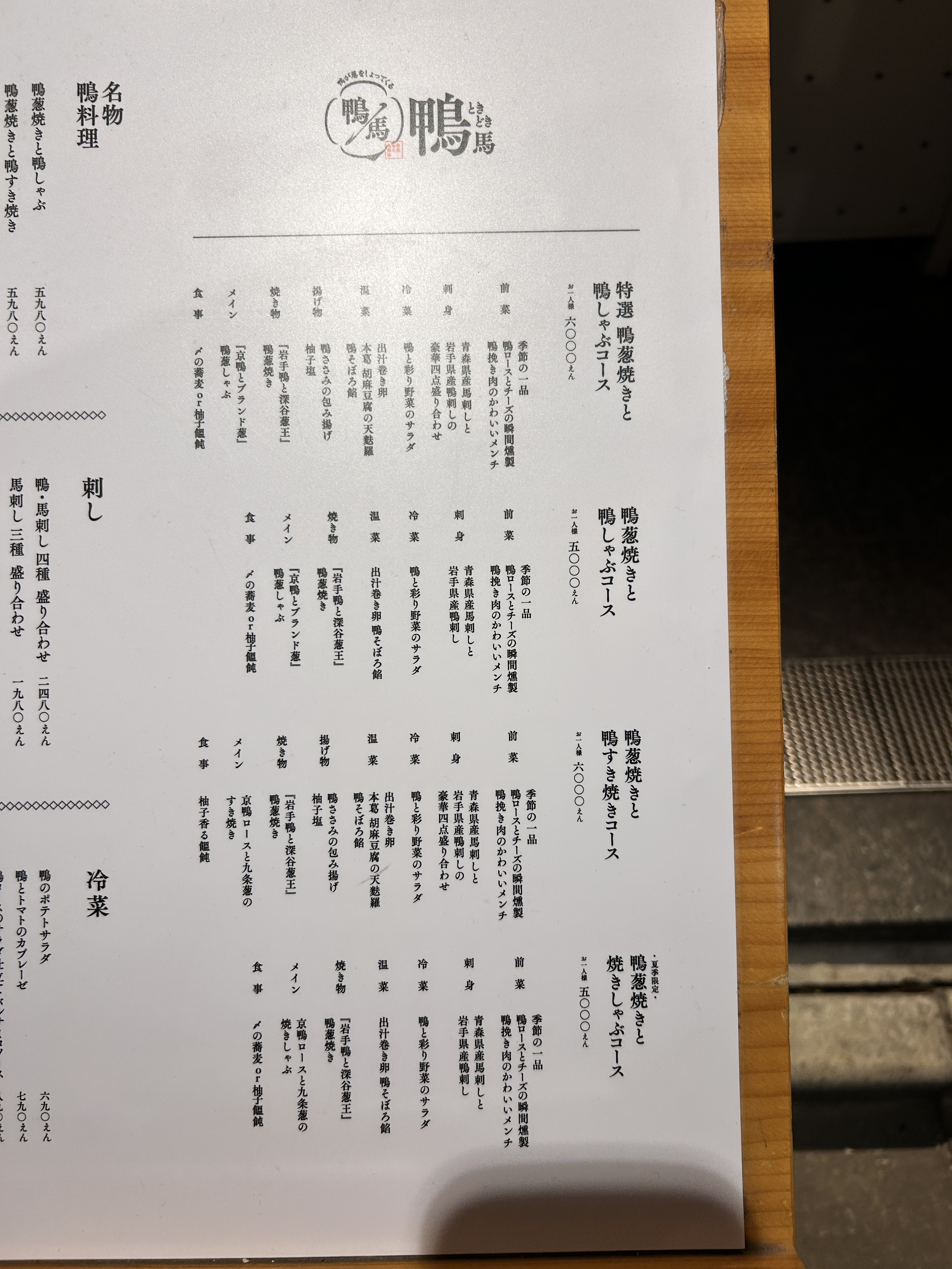 息子が予約しておいてくれたのは「【特選】鴨葱焼きと鴨しゃぶしゃぶコース」です。