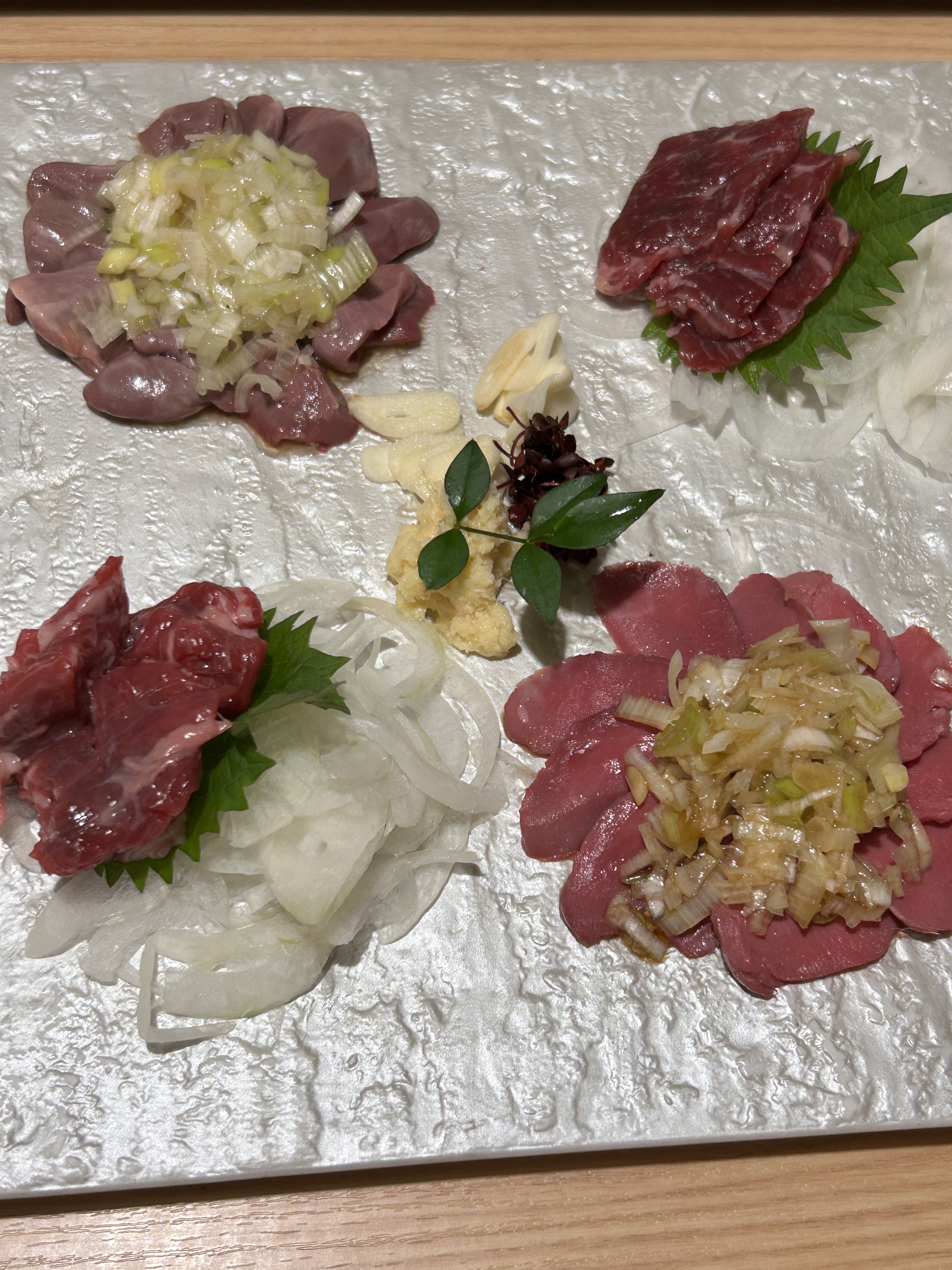 馬刺し・鴨の刺身、鴨もも肉の葱焼き、鴨しゃぶと、豪華メニュー!